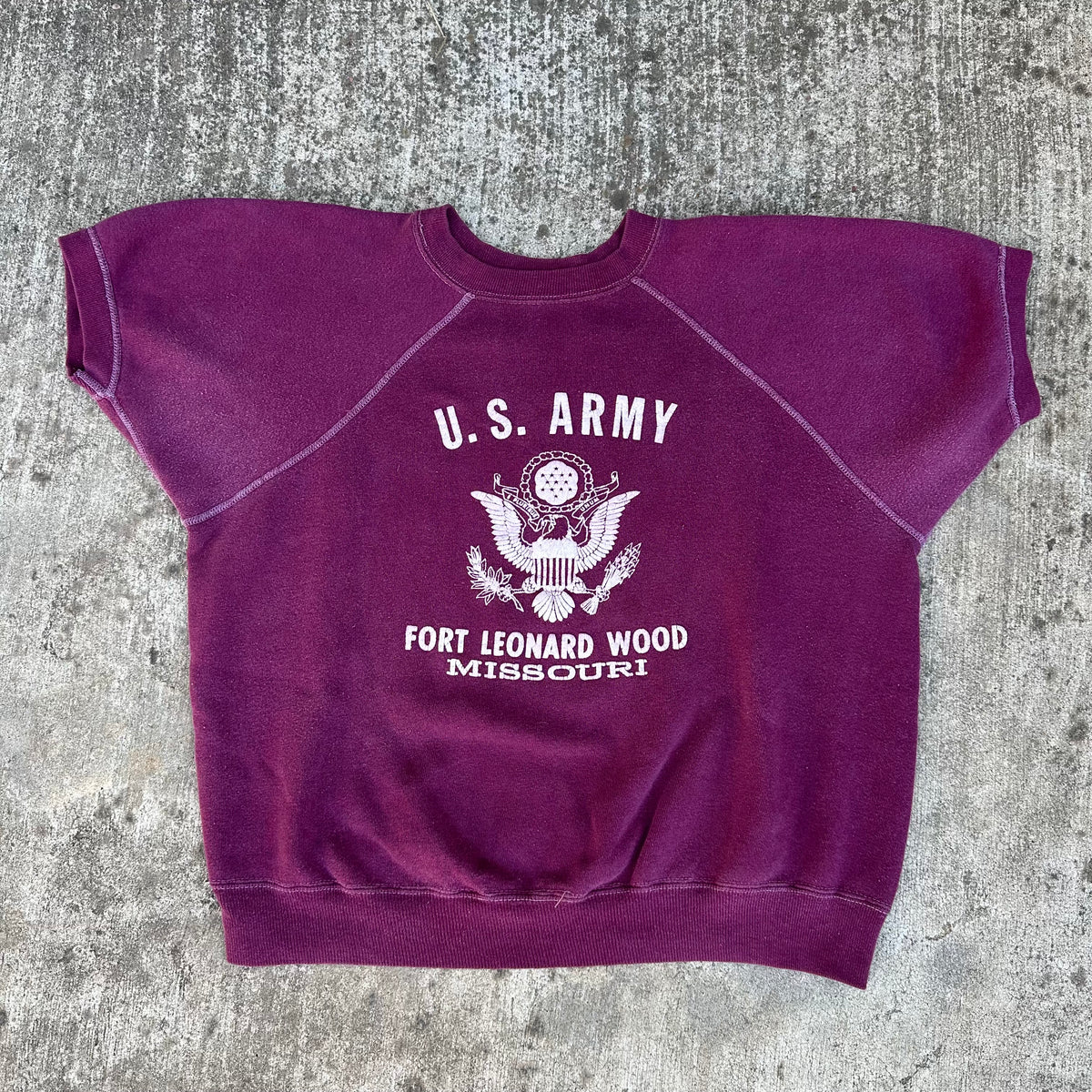 1960’s US Army Fort Leonard Wood Flock Print Short Sleeve Sweatshirt Large