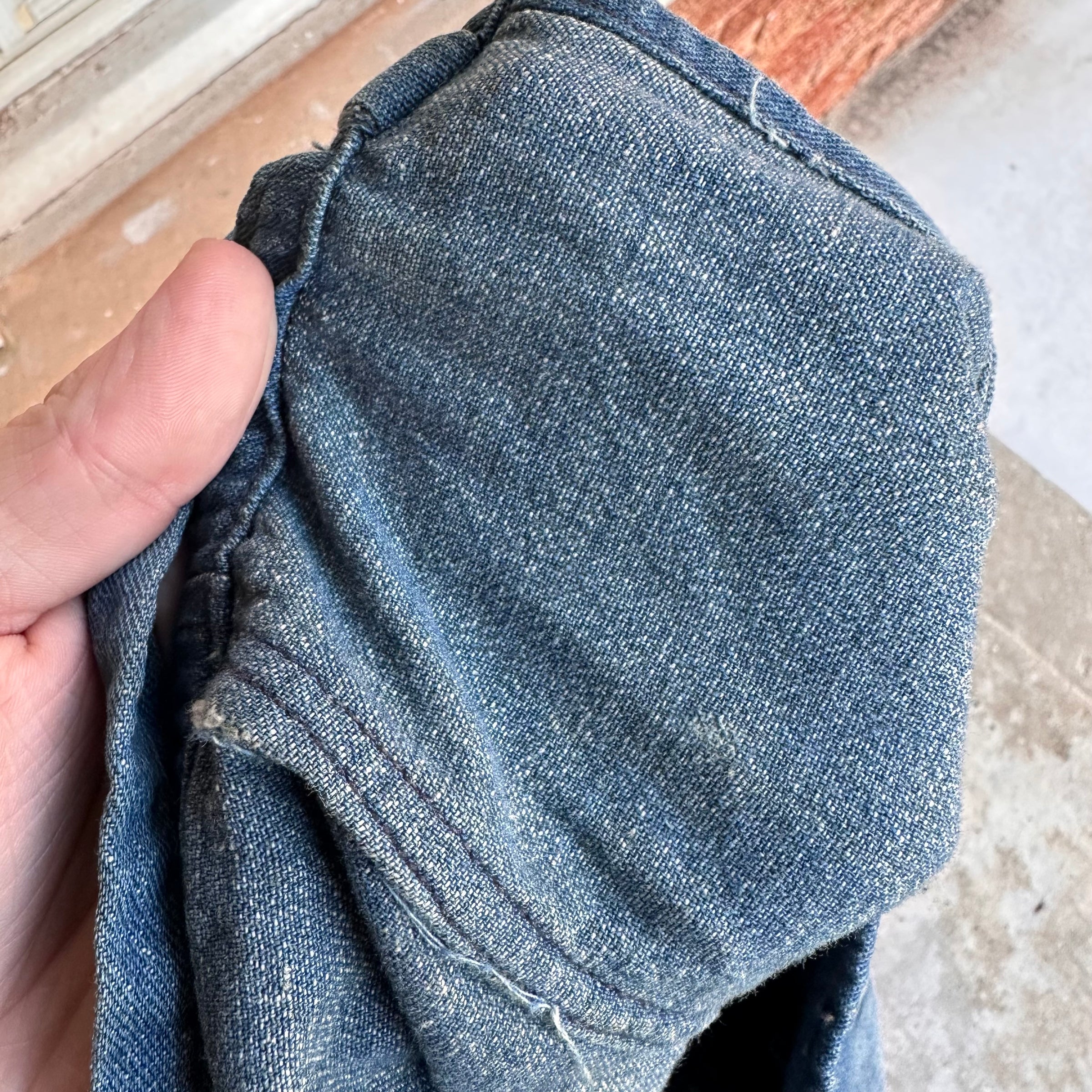 The buttons, the denim itself, the construction, everything about this is awesome. Can even see selvedge lines on the legs where the two holes are. Toddler sized, not meant for wear. If you still want measurements just reach out and I will take them for you. Perfect for display. Check pictures and measurements before purchase.