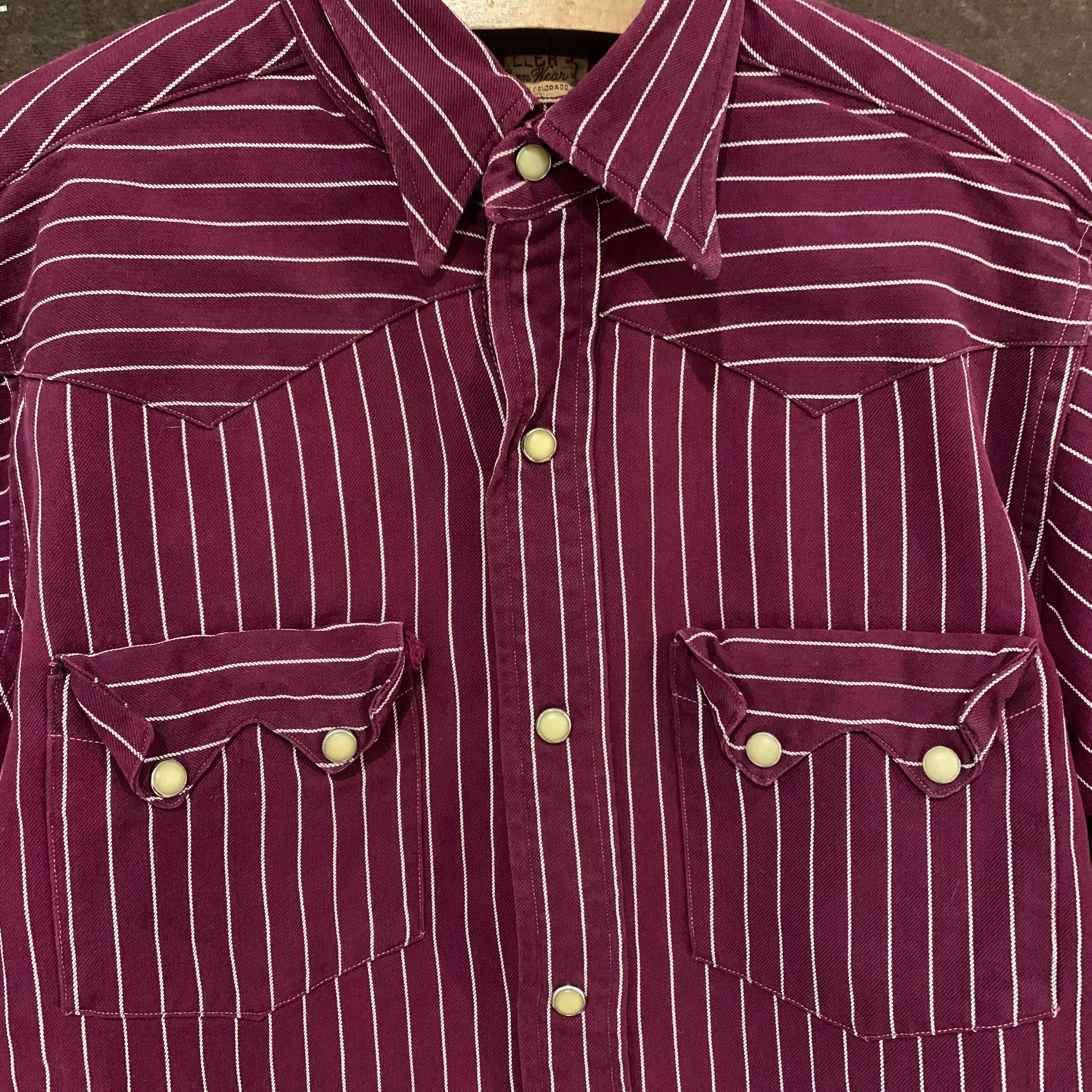 1930's Miller Striped Burgundy Sawtooth Gabardine Pearl Snap Western Shirt XS/S