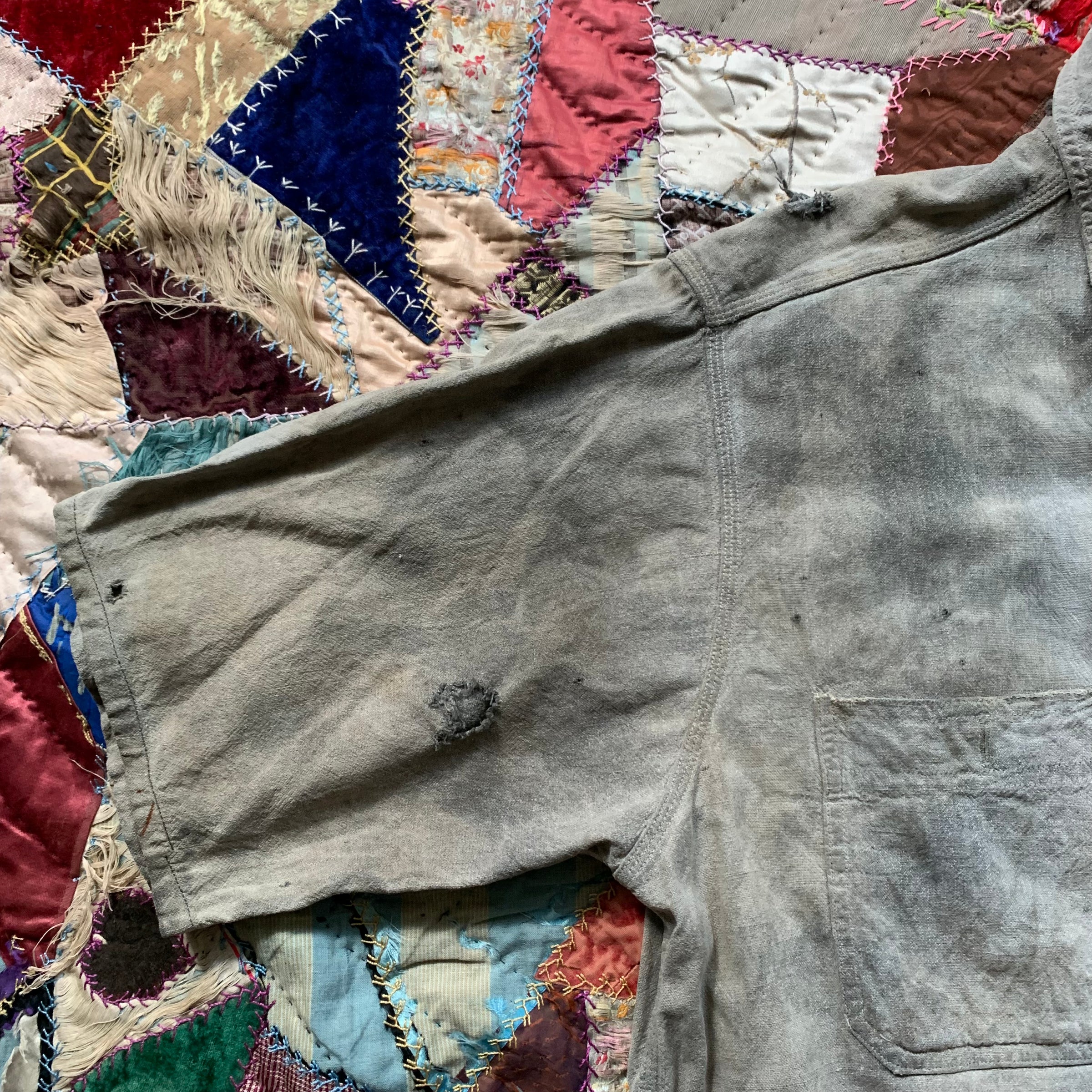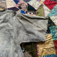 Well worn, great sun fading. Sleeves have been hemmed into short sleeves, some holes present but great look. Check pictures and measurements before purchase.