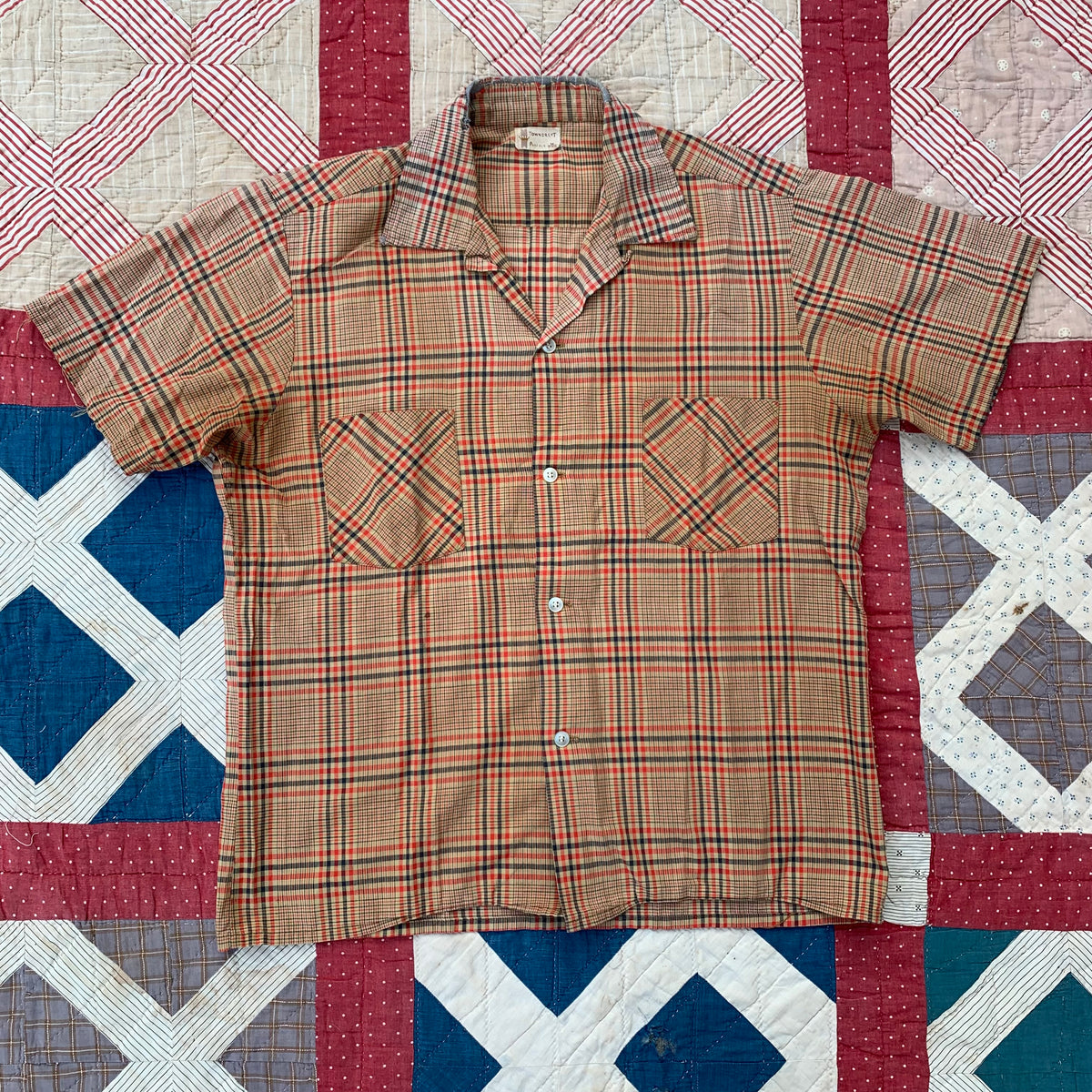 1950's Penney's Orange Plaid Loop Collar Short Sleeve Shirt Medium