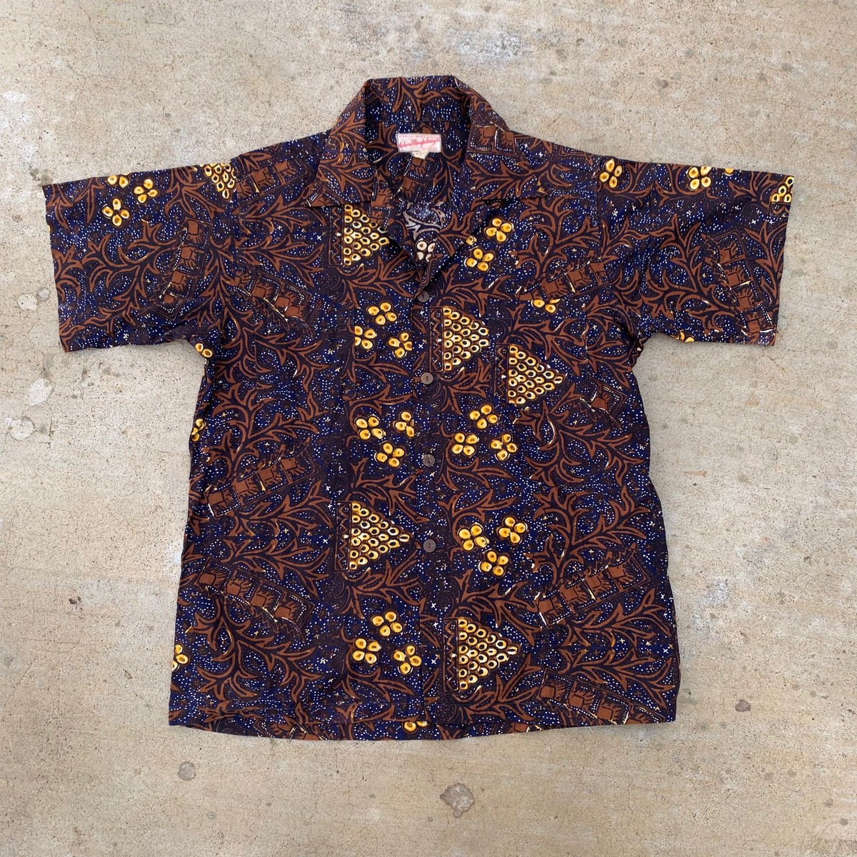 1950’s Kahana Brown Floral Cotton Hawaiian Loop Collar Shirt Large