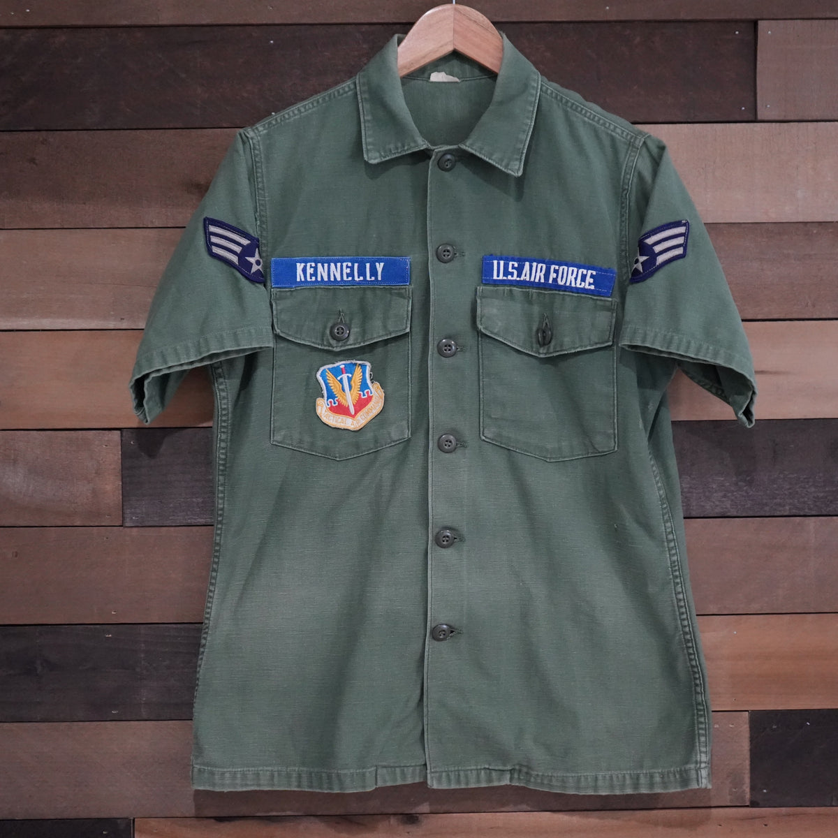 1960's Vietnam War USAF Patched Short Sleeve OG-107 Fatigue Shirt S/M