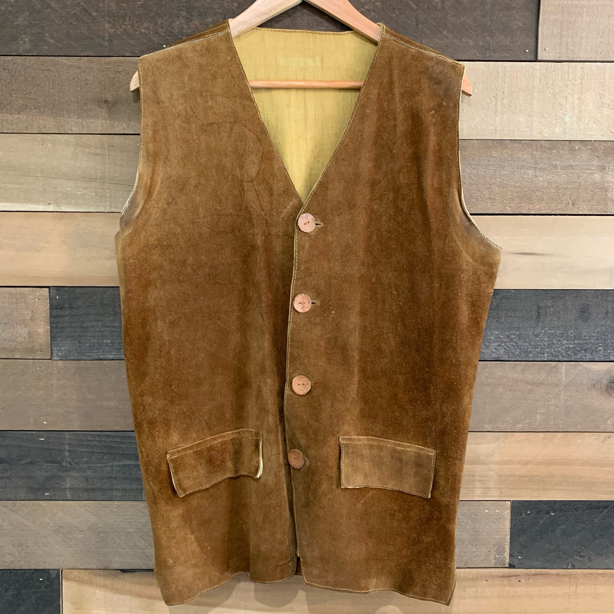 1960's/1970's Homemade Hippy Suede Leather Vest with Embroidered Hidden Pocket Medium