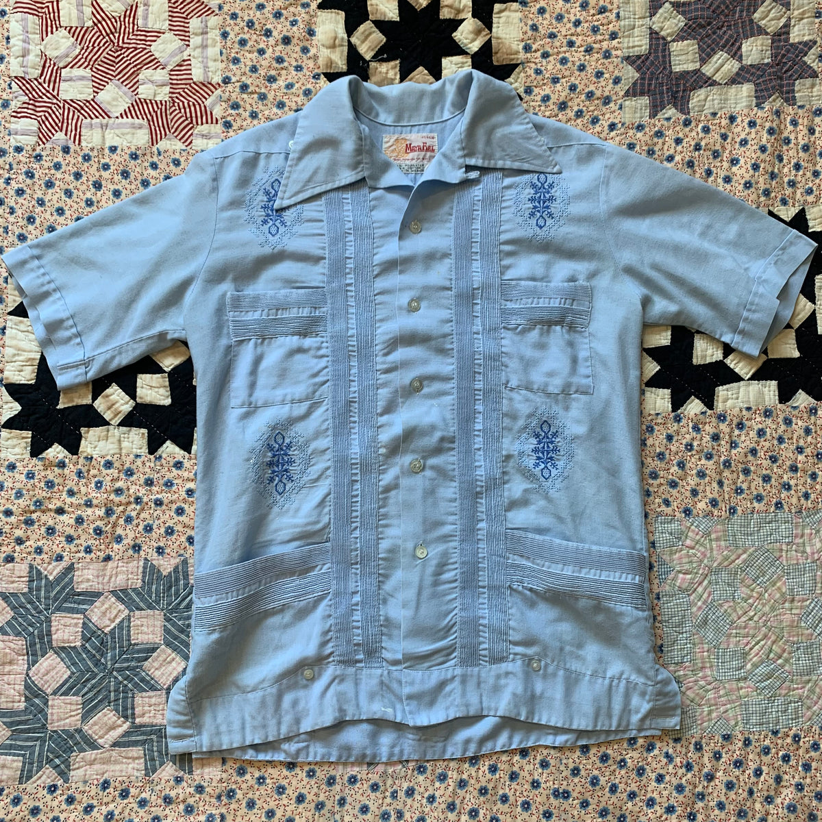 1960’s Maya Fiel Light Blue Guayabera Shirt Medium