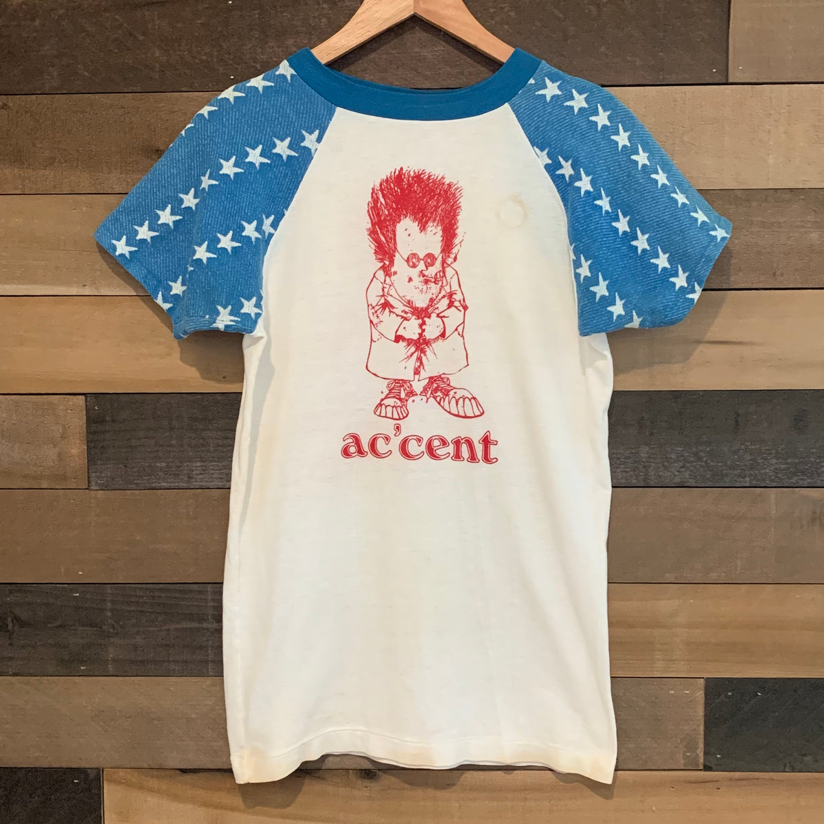 1970's Ac'cent Star Sleeved Velva Sheen T-Shirt M/L