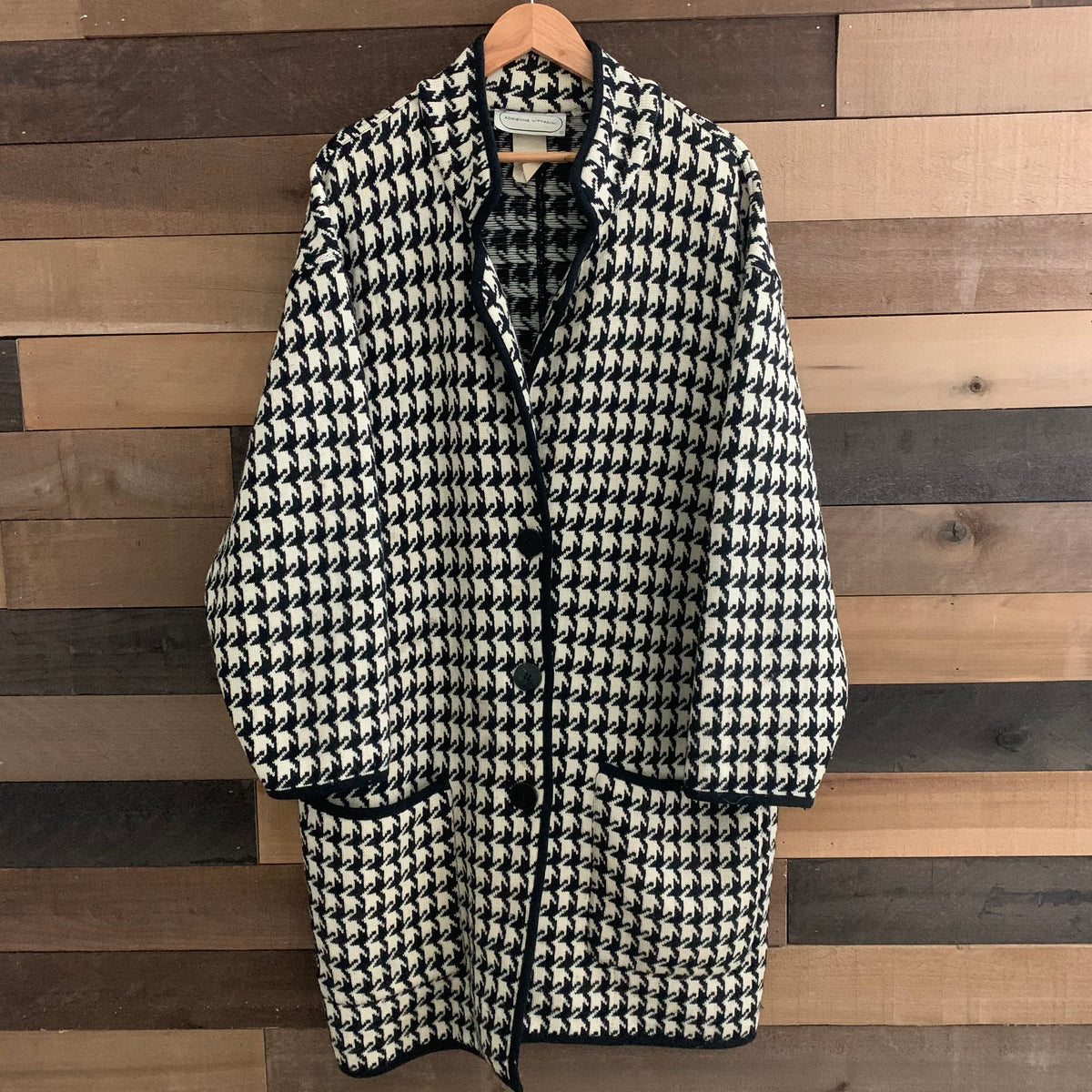 1970's Adrienne Vittadini Black and White Houndstooth Long Coat L/XL