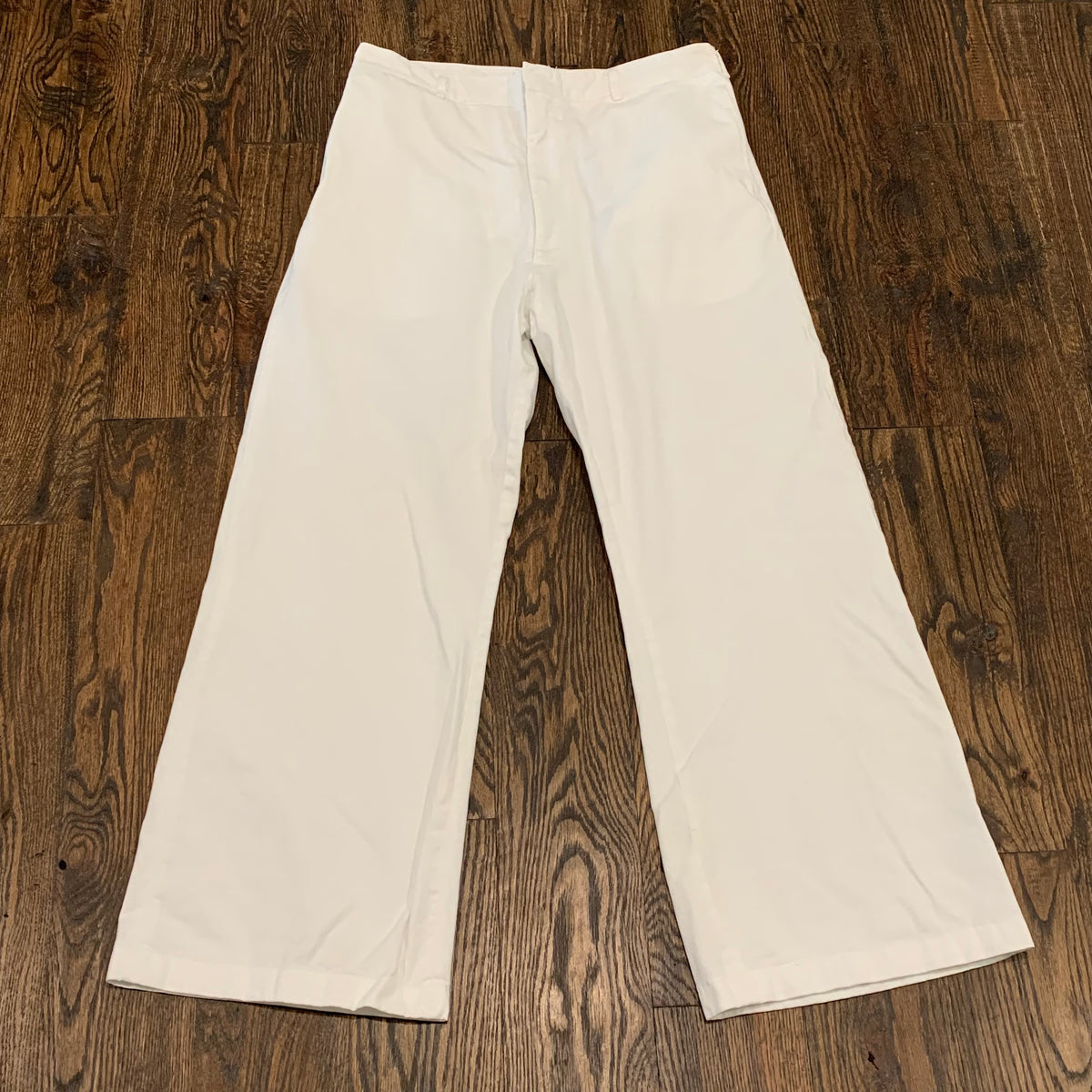 1970's 1973 Vietnam War Era US Navy White Sailor Pants Full Leg 34" Waist