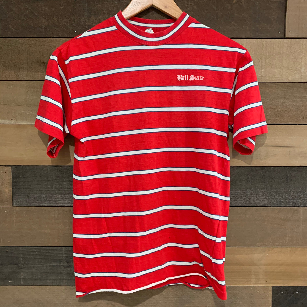 1970's Ball State University Striped Champion Blue Bar T-Shirt Small