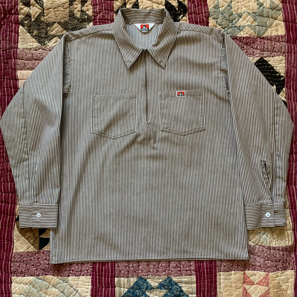 1970's Ben Davis Brown Hickory Stripe Pullover Shirt XL