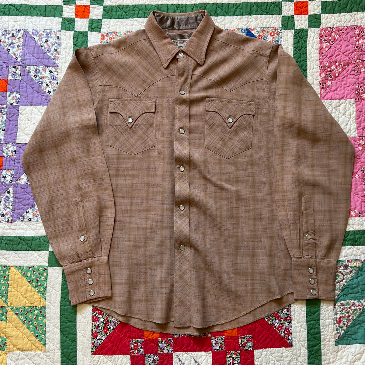1970's H Bar C Gabardine Western Pearl Snap Shirt Medium