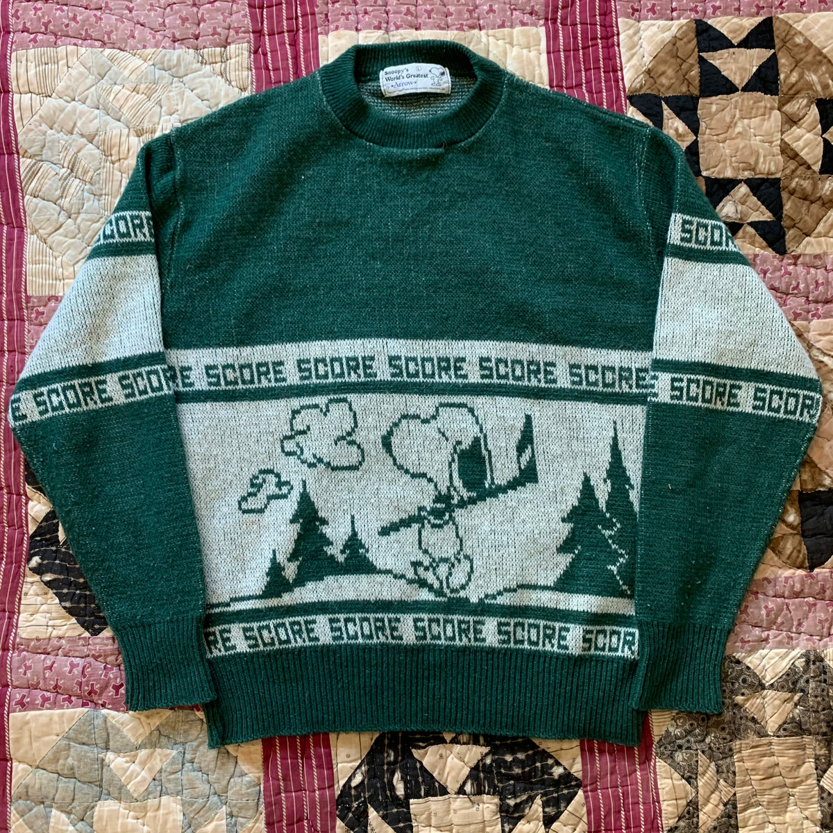 1970's Forest Green Acrylic Blend Snoopy Sweater Medium