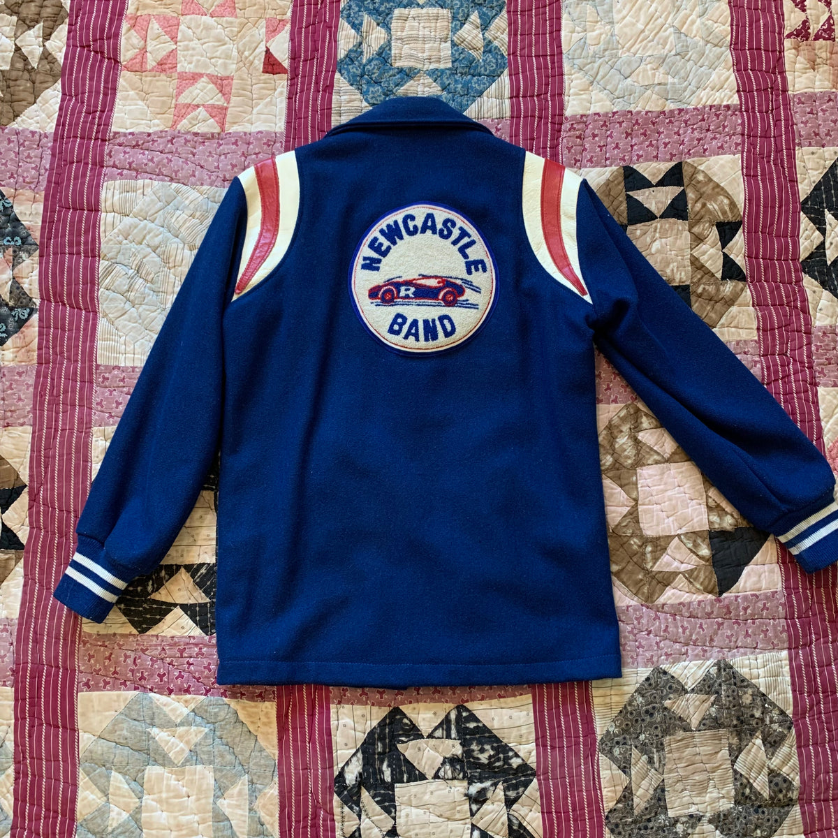 1970's Newcastle Band Patched Varsity Wool Jacket with Leather Accents Small