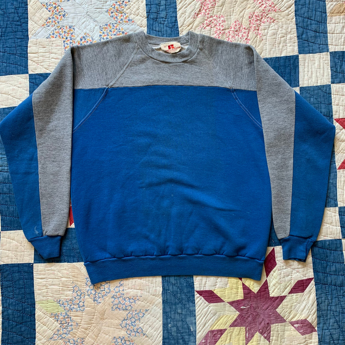 1970's Russell Athletic Blue and Gray Raglan Crewneck Sweatshirt Medium
