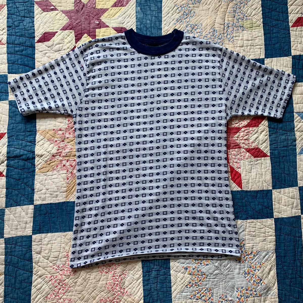 1970's Sears Navy Houndstooth Cotton Flannel Pajama Shirt XL