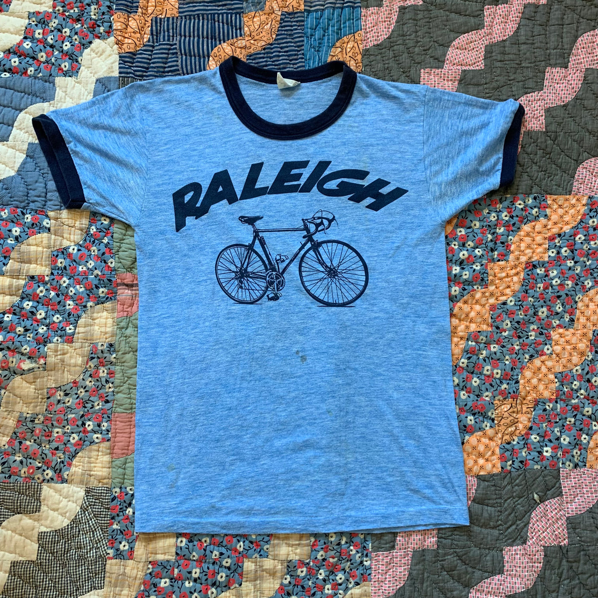 1970's Raleigh Bicycles Heather Blue Ringer T-Shirt Small