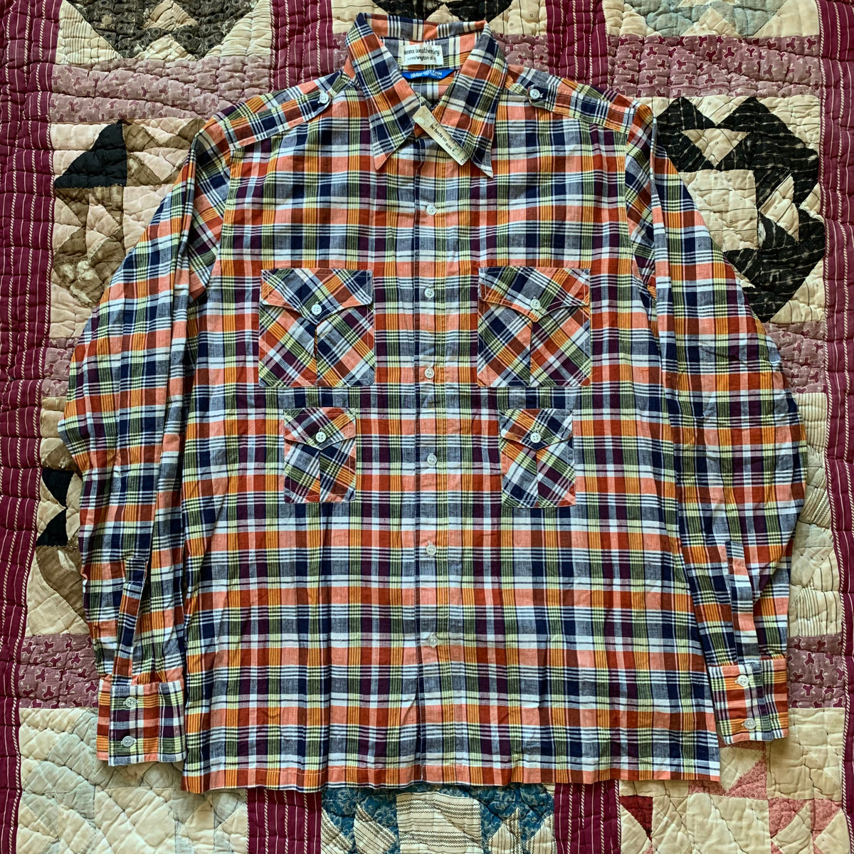 1970’s Deadstock Anna Weatherley Madras Button-Up Shirt with Pockets Large