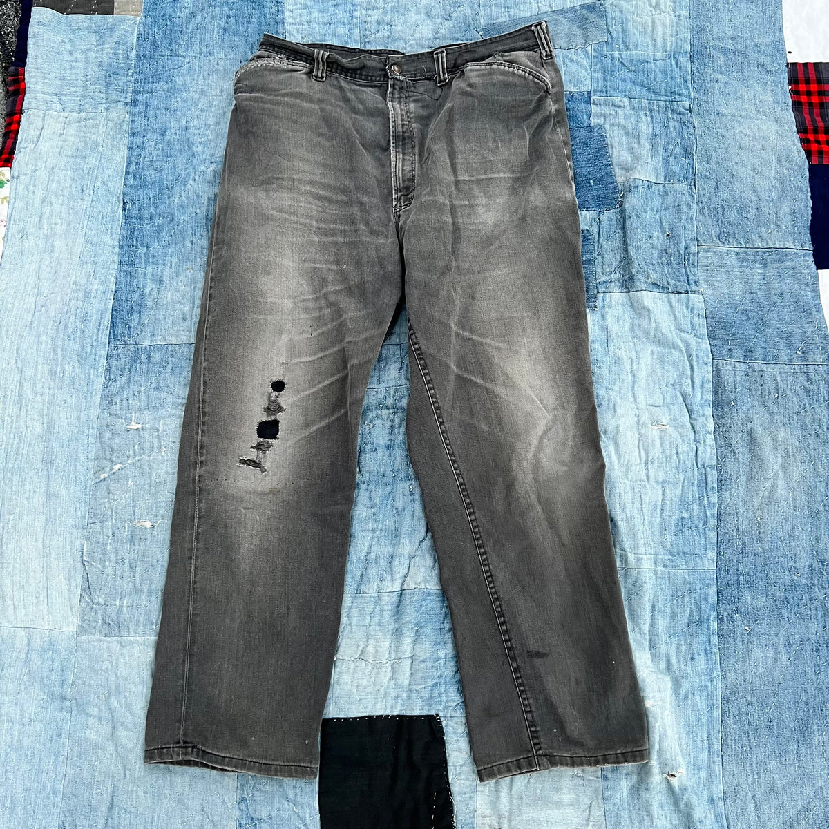 1970’s Faded Repaired Black Denim Work Pants 36” Waist