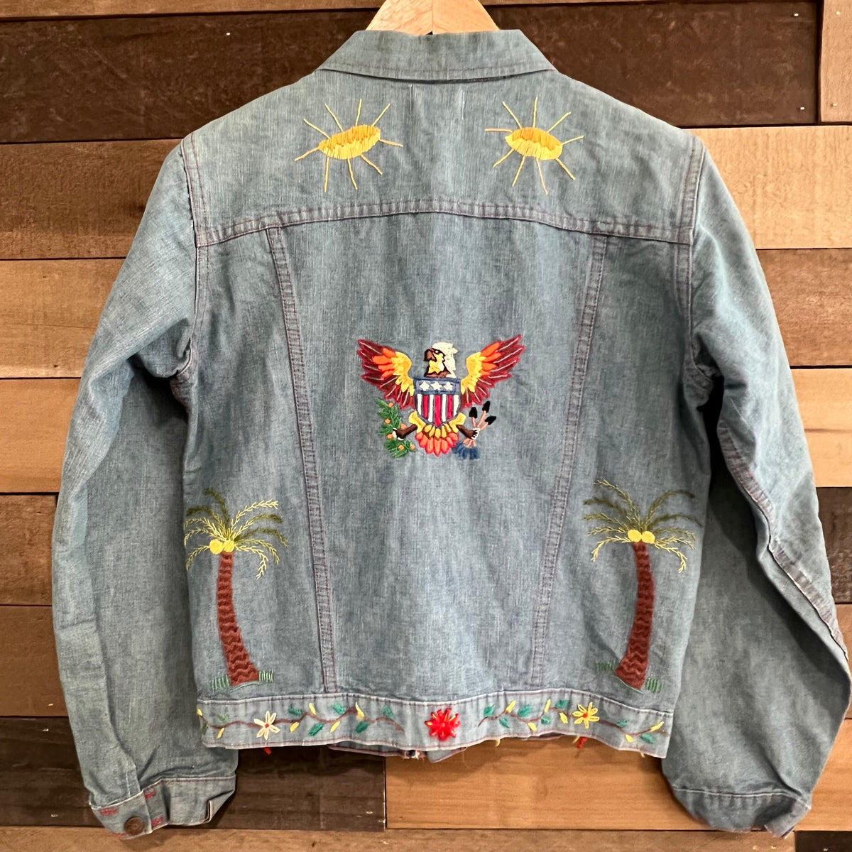 1970’s Madewell Embroidered Contrast-Stitch Hippy Denim Jacket Small
