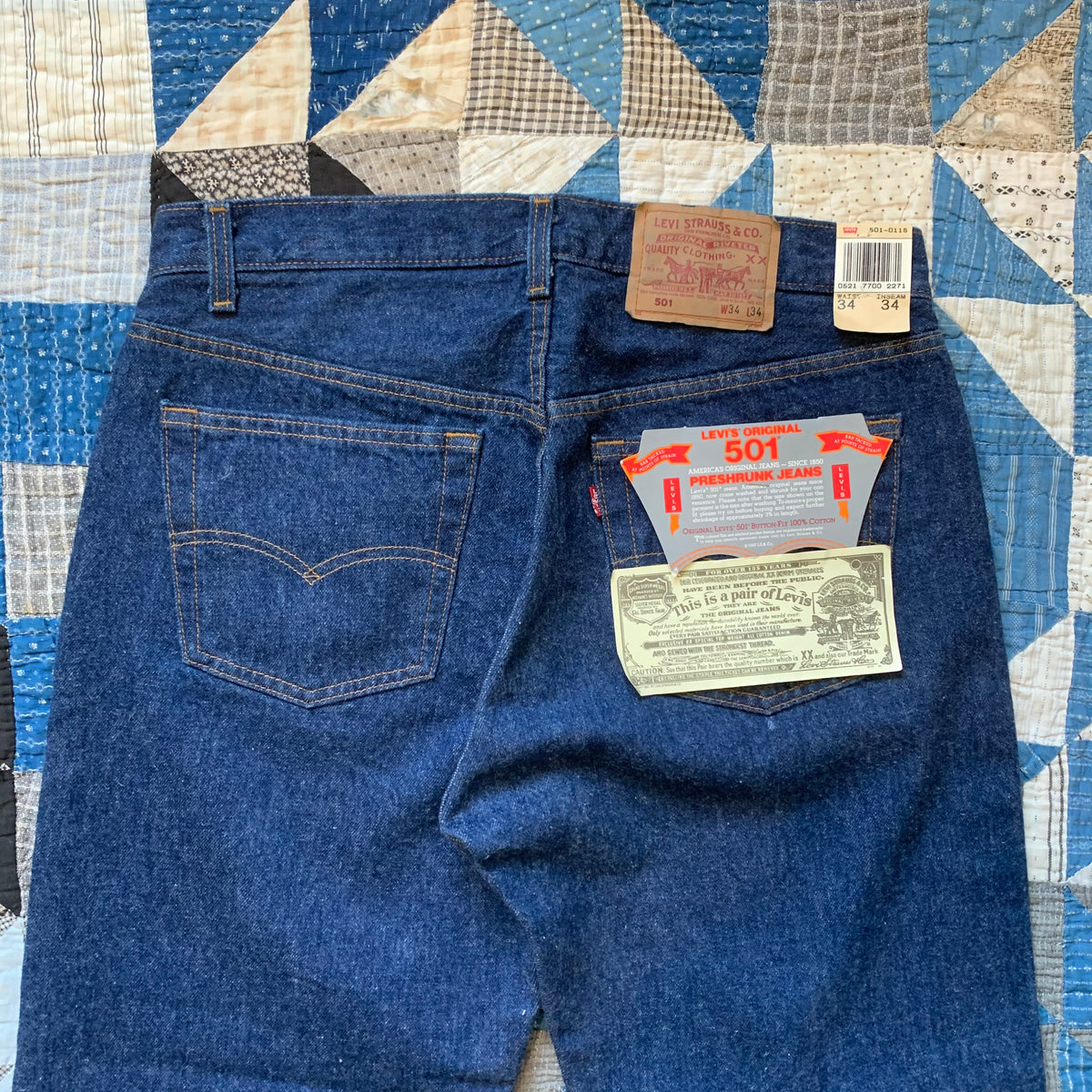 1980's Deadstock Levi's 501 Denim Jeans Measured 32" x 34"