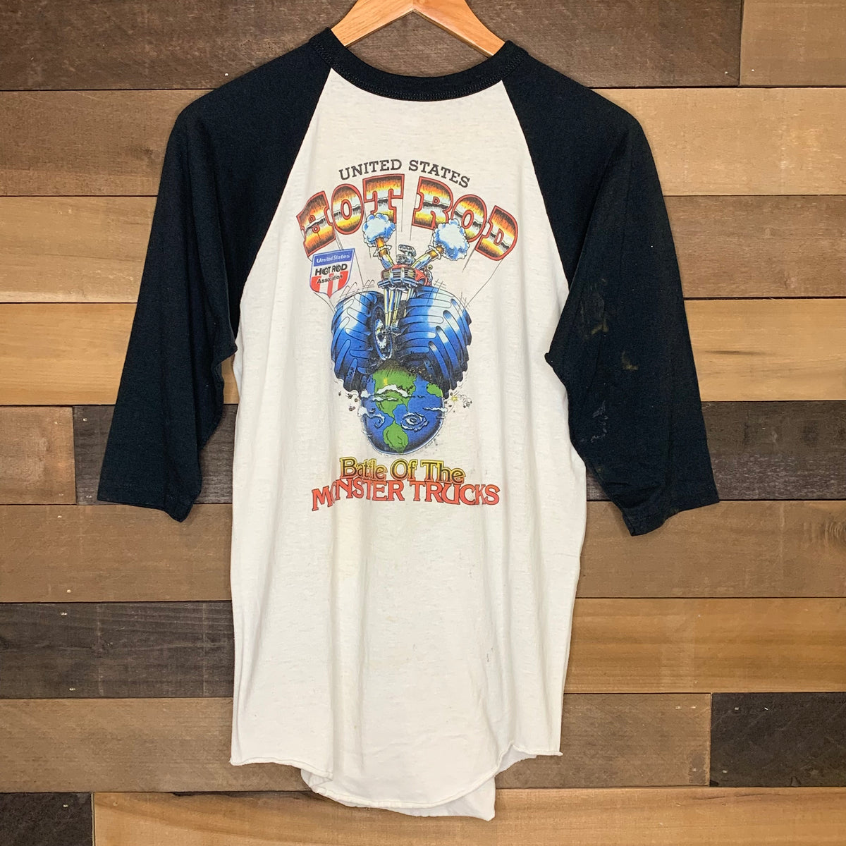 1980's Hot Rod Battle of the Monster Trucks 3/4 Sleeve T-Shirt Medium