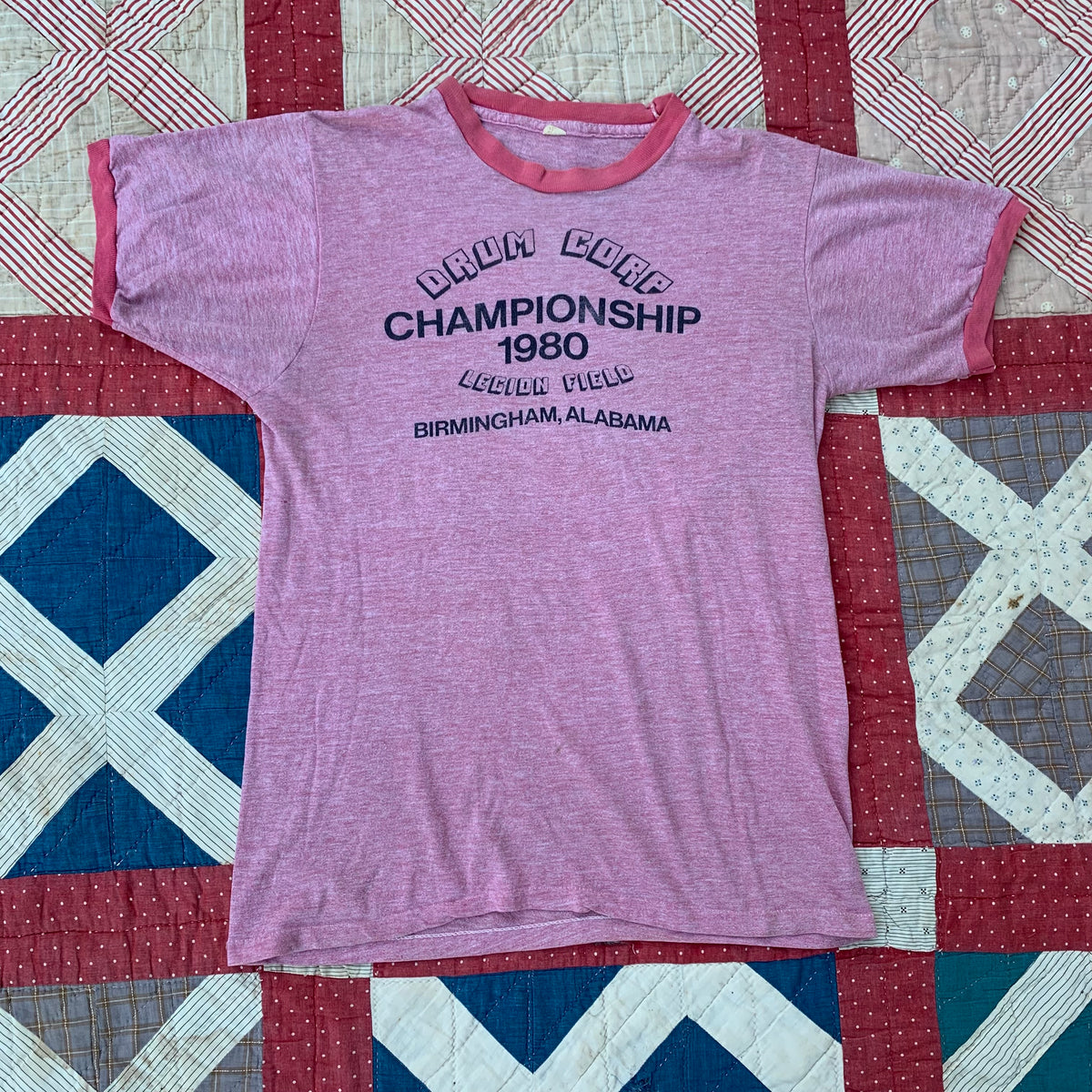 1980's Heather Pink Drum Corp Championship Ringer T-Shirt Small