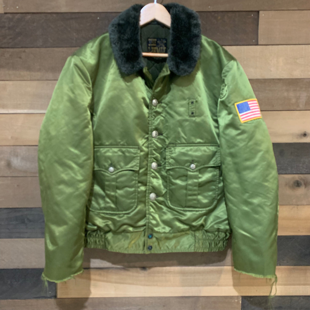 1980's The Lawmen Green Sheriff Type Fur Collared Puffer Jacket Medium