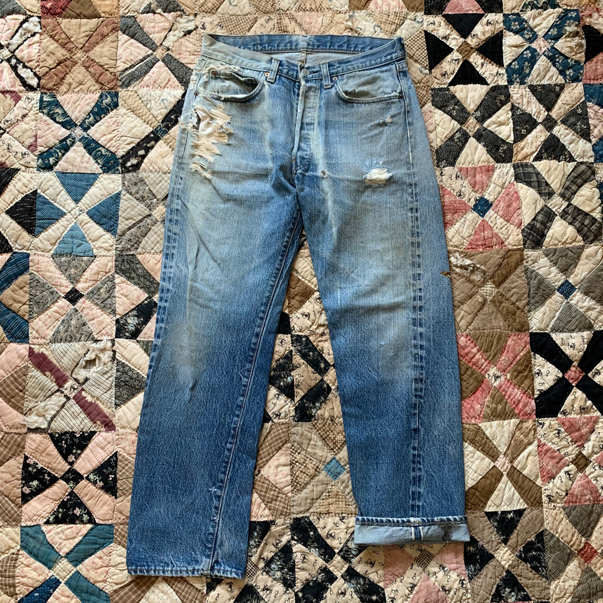 1980's Thrashed Levi's 501 Redline Selvedge Denim Jeans 31” x 28”