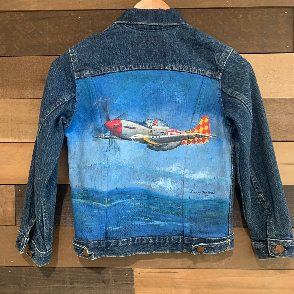 1980's/1990's Kid Sized Denim Jacket With Fighter Plane Painted Back