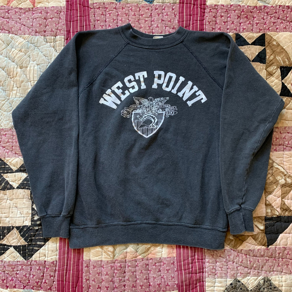 1980's West Point Flock Print Champion Crewneck Sweatshirt Medium