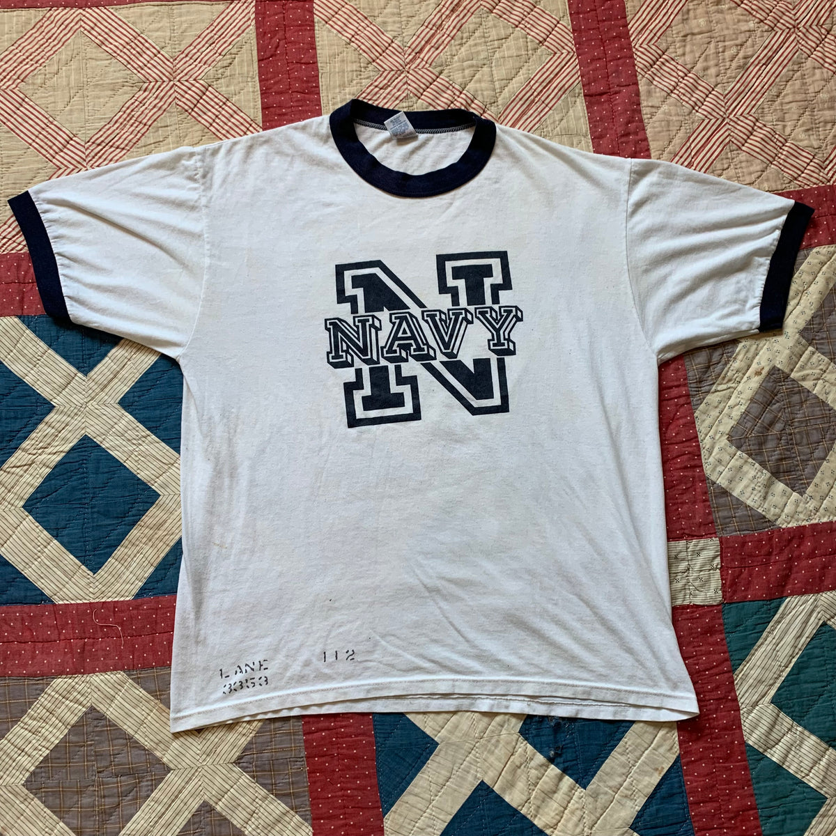 1980's US Navy Stenciled Ringer T-Shirt XL