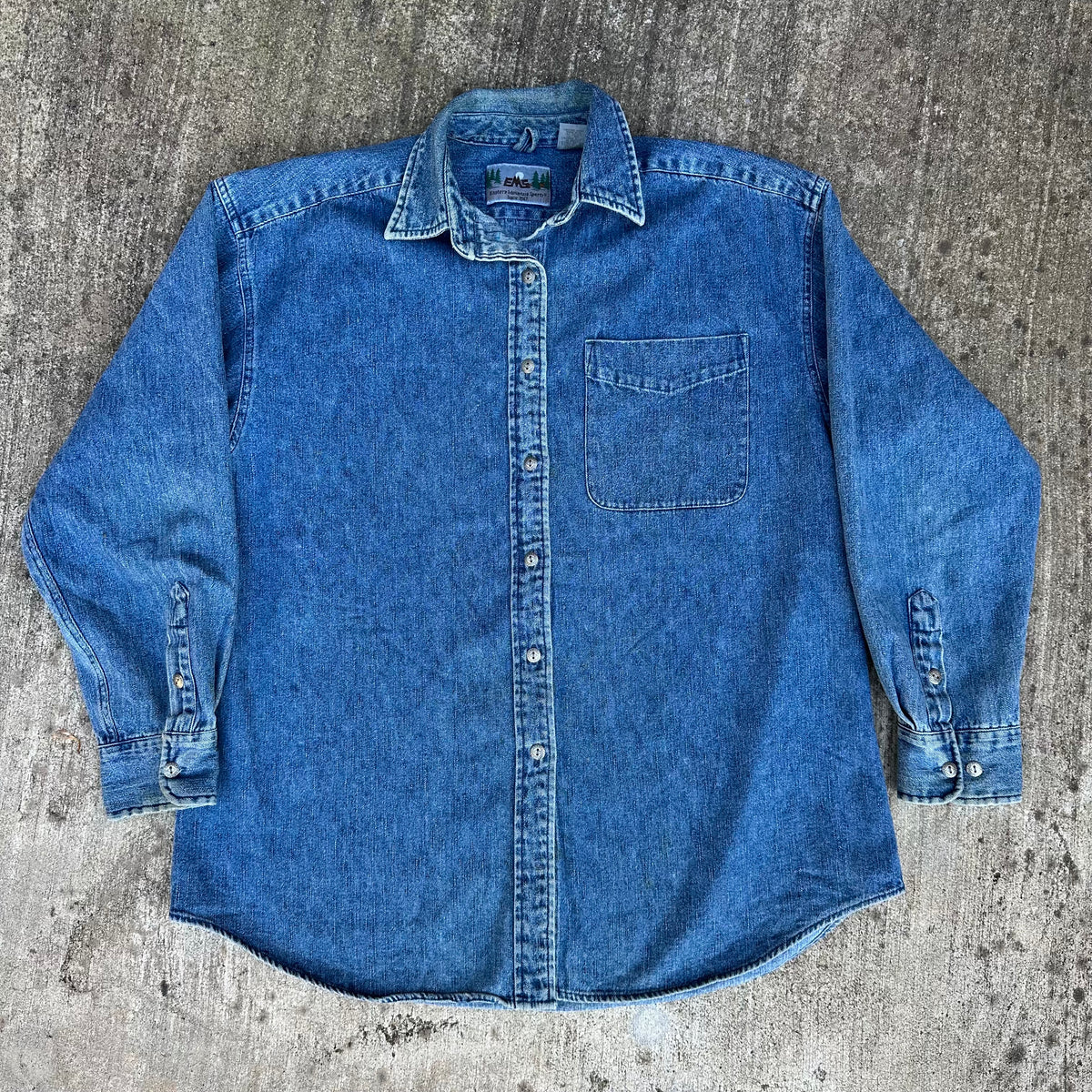 1980’s Eastern Mountain Sports Denim Button Down Shirt Medium