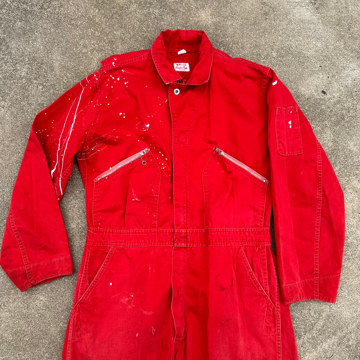 1960’s Walls Paint Splattered Red Coveralls Size 42R