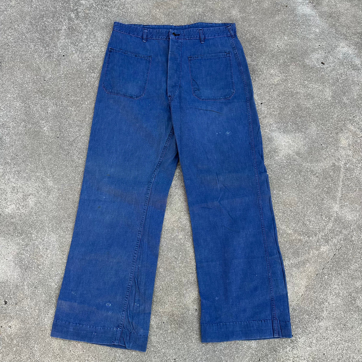 1960’s Vietnam War Era Stenciled USN Denim Pants 35” x 30”