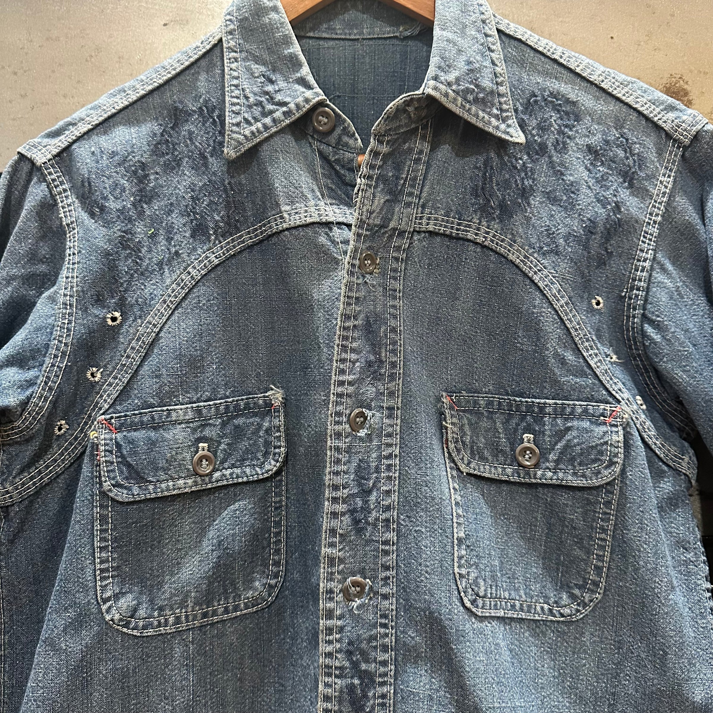 Looks 20’s/30’s with the yoke design and vent holes. Used to have some pretty flowers on the front. Some wear on button holes. Tag missing, smaller size. Check pictures and measurements before purchase.