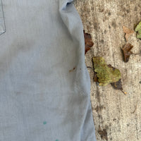 Poly blend. Well-worn but great look. Check pictures and measurements before purchase.