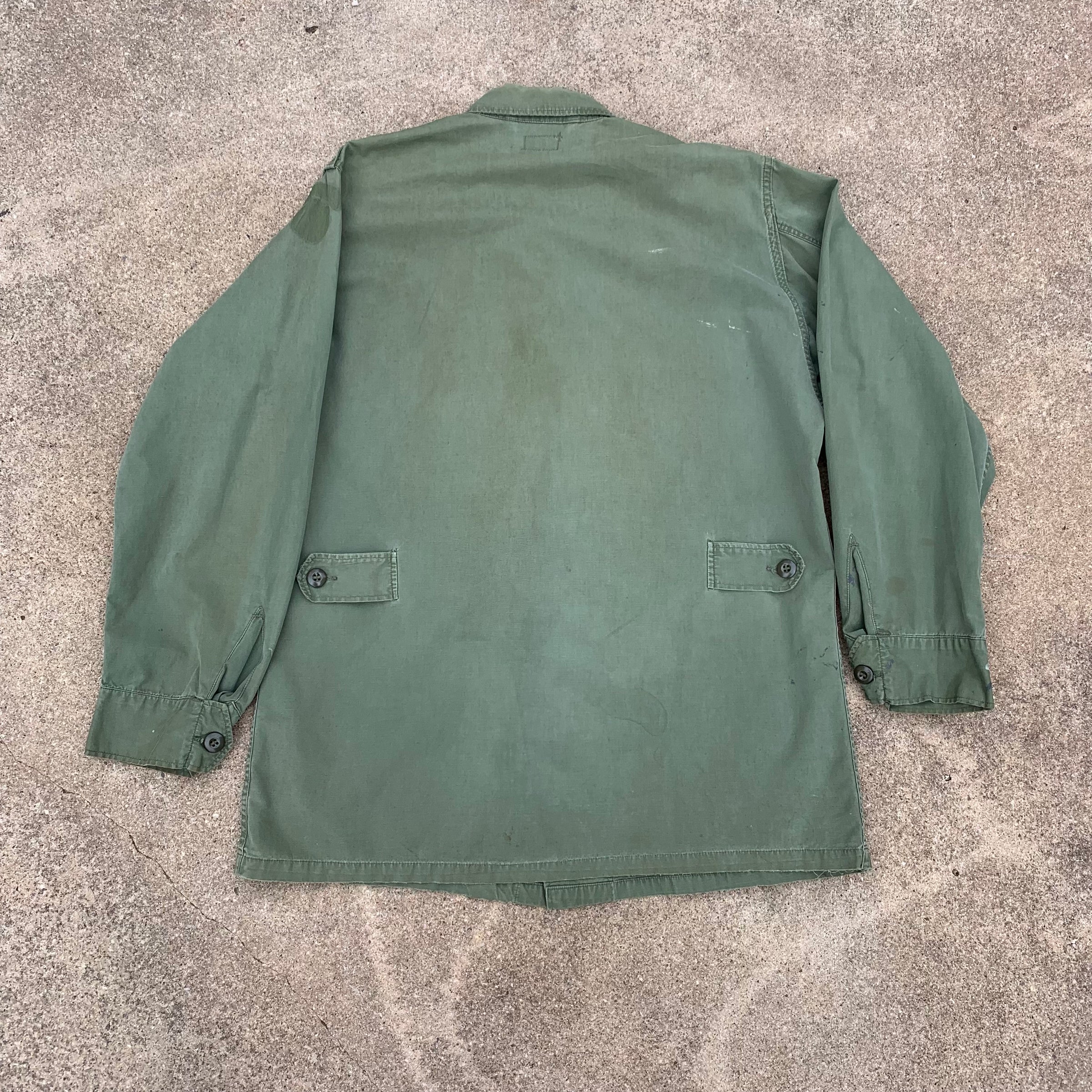 First pattern jungle jacket attached to Colonel Thomas Callagy. He served in WWII, Korea, and Vietnam. Was an advisor for the Thai army during Vietnam. No tags left but most likely a medium regular. Check pictures and measurements before purchase.